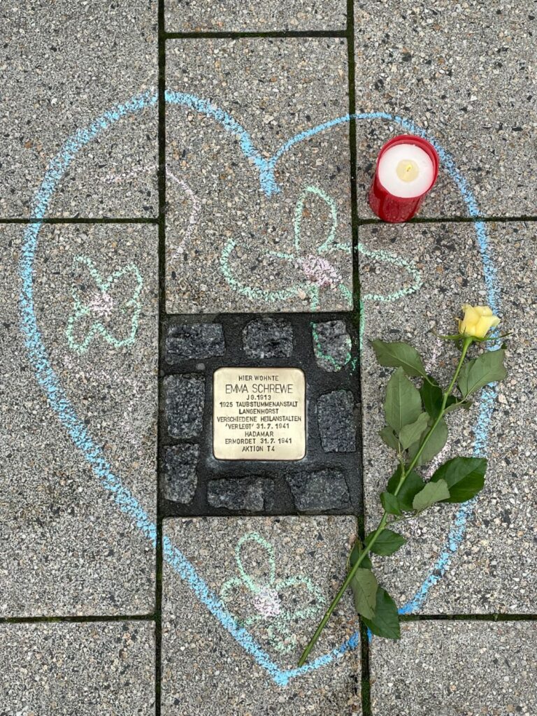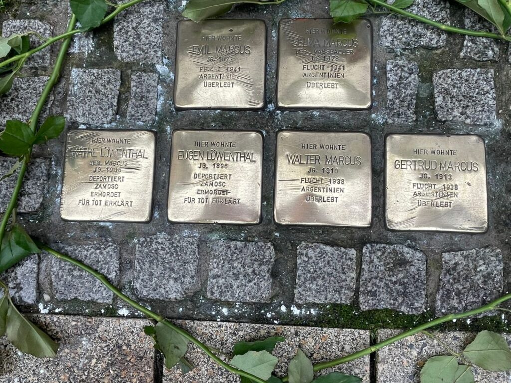 Besonders betroffen gemacht hat uns, dass die im Mai 2010 verlegten Kupfersteine der Familien Marcus / Löwenthal, die 2024 noch intakt waren, augenscheinlich mutwillig und vorsätzlich im letzten Jahr stark beschädigt wurden.